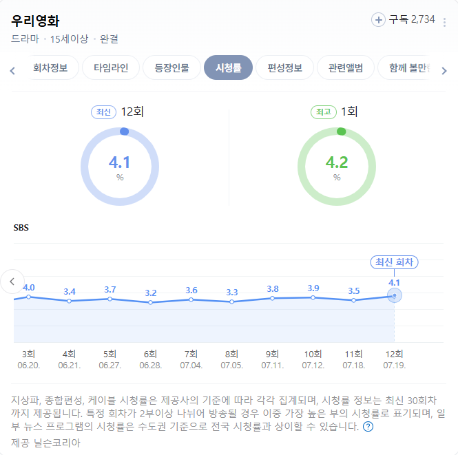 SBS 금토드라마 ‘우리영화’가 지난 7월 19일 12회를 끝으로 4.1% 시청률로 막을 내렸습니다.
